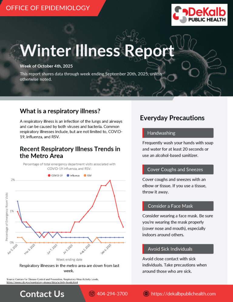 Please monitor dekalbpublichealth.com, our social media channels (Facebook, Instagram and X), and Atlanta-area news media for further operational updates.